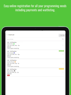 CourtReserve is a scheduling tool built to help coaches, players, and staff keep track of daily schedules for lessons and clinics. Our custom views will help you organize your team's schedule so that you can make the most of your time on the court!