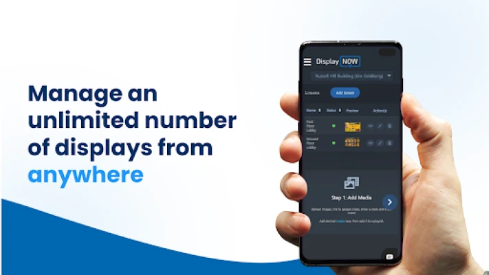1) Install the app on the device. 2) Sign in to manager.displaynow.io and pair the Screen using the code shown in the app. 3) Add Media and create a Playlist or Broadcast to show content as desired.