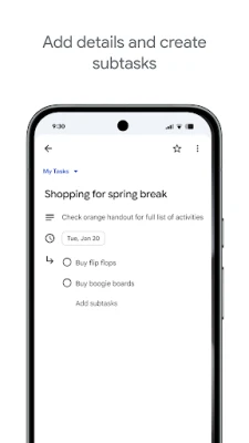 • Track multi-step tasks with subtasks, helping you break down to-dos into smaller components