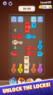 Lock Jam is a puzzle game where you drag keys through a board, matching them to their same-colored lock, but watch out! Keys block each other’s paths, forcing you to strategize every move.