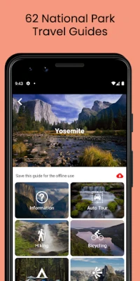 • Access detailed travel guides for the top-visited national parks including Yellowstone, Yosemite, Grand Canyon, Zion, Grand Teton, Mount Rainier, Great Smoky Mountains, Rocky Mountain, Olympic, Bryce Canyon, Joshua Tree, Cuyahoga Valley, Death Valley, Cape Cod, Zion, Acadia, and many more!